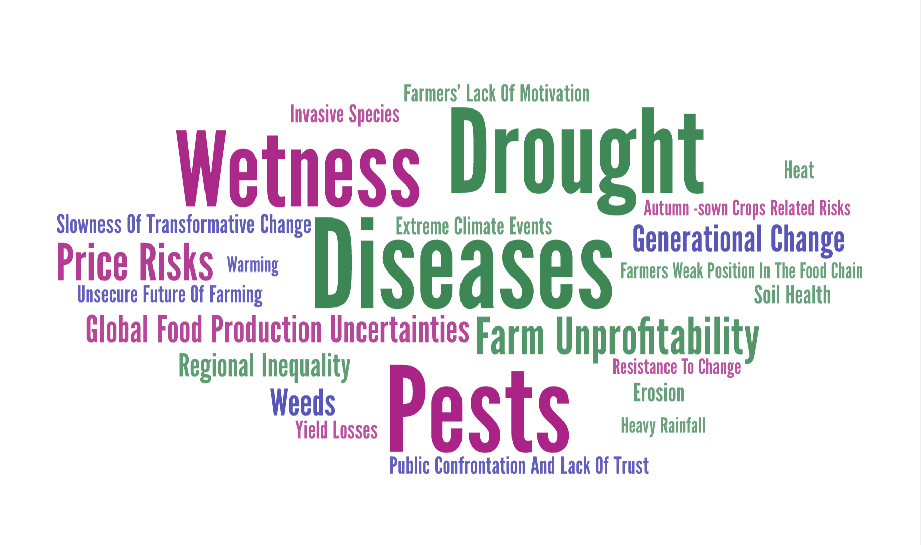 Across all regions, participants raised water variation extremes as one of the most pressing risks. Droughts, heavy rainfall, flooding, and warmer, unstable winters are already disrupting both farming and forestry. Concerns about pests, diseases, and invasive species were also widespread, as were worries about profitability and long-term economic resilience.